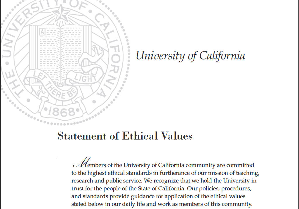 UC Statement of Ethical Values preface