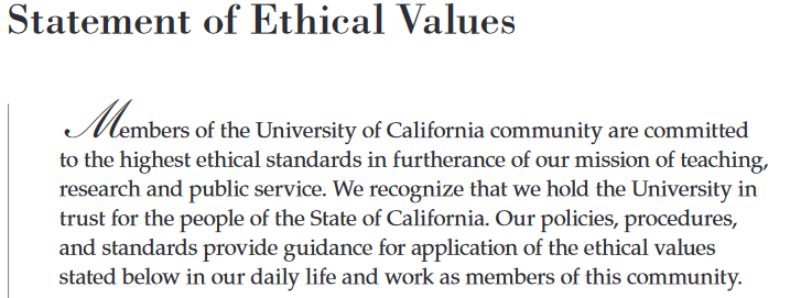 UC Statement of Ethical Values preface